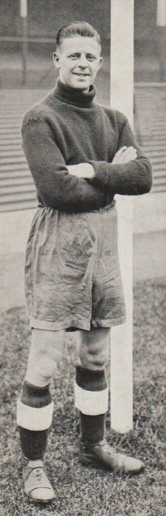 After gaining a reputation as a penalty-saving expert at Grimsby Town, where he became the first goalkeeper to save three penalties in one game (and saved 14 of the 17 spot-kicks he faced in the 1908/09 campaign), Worksop-born Walter Scott made the switch to Goodison Park in January 1910 for a fee of £750.  He played in the final eight games of his first season on Merseyside, after namesake Billy Scott suffered a nasty hand injury in the FA Cup semi-final defeat to Barnsley.  Incredibly, Everton’s new stopper repeated his penalty-saving heroics of the previous term in just his third game for the Blues, keeping out Henry Low’s spot-kick in a 1-0 victory over Sunderland at Roker Park.