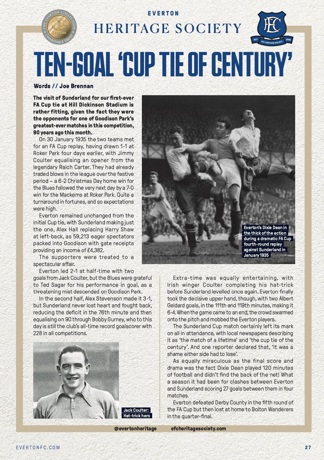 Everton FC Heritage Society matchday article page – Everton v Sunderland, FA Cup 3rd round, 10 January 2026, by Joe Brennan