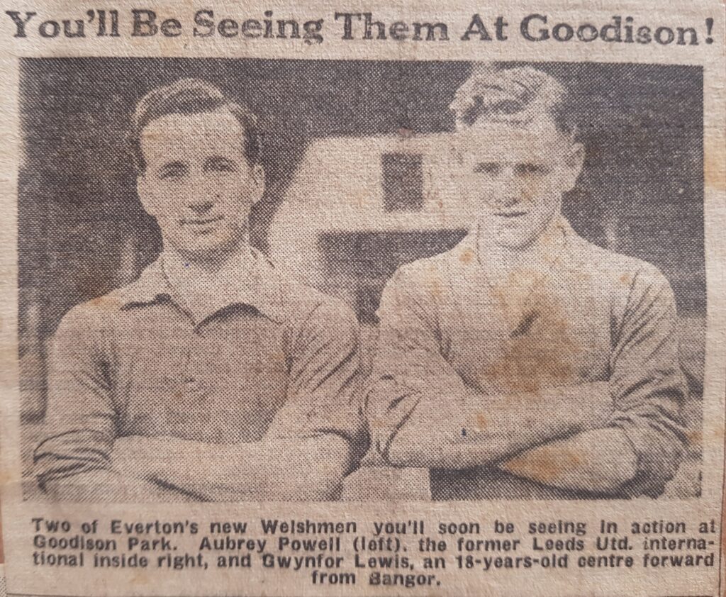 Born on 21 April 1932, Gwynfor (Gwyn) Lewis became one of Bangor’s finest footballing sons. Like fellow Bangor-born forward Nathan Broadhead, over six decades later, Gwyn would only get fleeting opportunities at Everton, but established himself as an accomplished goalscorer in lower league football.