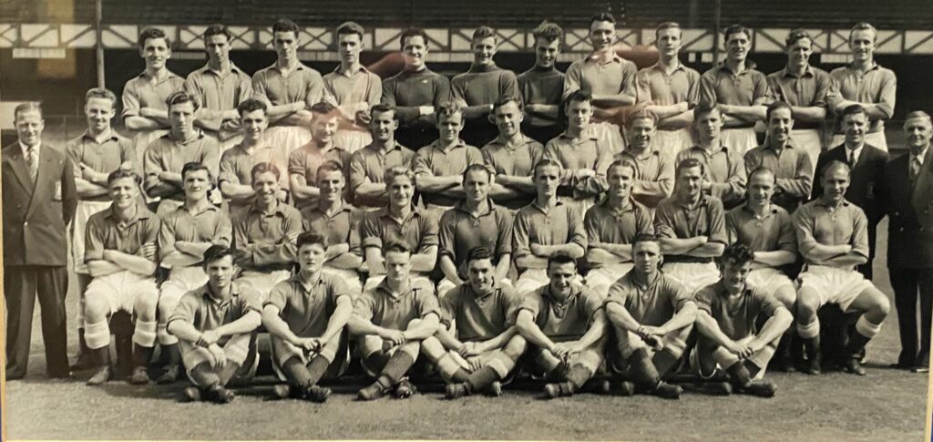 As a teenager, Gwyn was spotted by a Bangor City director and by sixteen he was turning out for the Cheshire League club’s first team at Farrar Road. He also gained Wales Youth (Under 18s) honours – in one match running with the ball from the halfway line to score against Northern Ireland in Belfast. Gwyn’s father pushed him; he could see the talent in his son and was desperate to further his career. He got in touch with a few footballing people hoping to secure a trial for Gwyn who had just turned seventeen in May 1948. Everton gave him a chance and liked what they saw. Their newly signed centre-forward would collect the princely sum of £7 per week in the season, but £2 less in the summer.