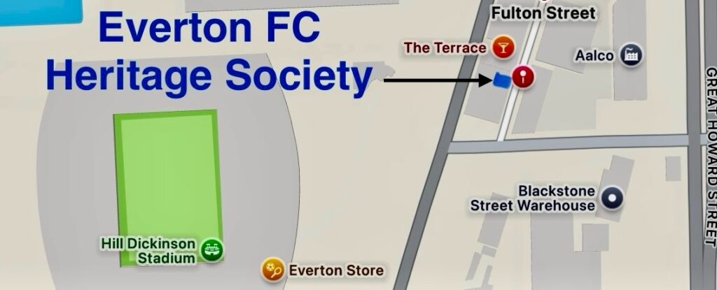 Although it was great to see The Bluehouse open for the Everton v Roma game, we are still not quite ready regarding our transfer from St Luke’s. The entrance for Everton FC Heritage Society exhibitions and stalls will be from the rear of the Rollo building on Fulton Street, but full details will appear on here and on our social media when we are ready to open on match days.