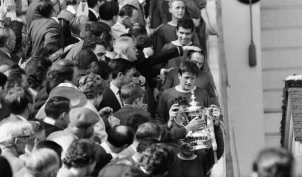 He continued as the regular pick in the number two shirt during the 1965/66 season, but was replaced by the dependable and versatile Sandy Brown for several matches in the weeks leading up to the FA Cup Final. Catterick broke the news on the day before the match that Tommy would get the nod over Brown – this choice by the manager was overshadowed by the decision to bring in the relatively unknown Mike Trebilcock for injury-troubled star striker Fred Pickering. Thus, Tommy would join fellow local lads Brian Labone, Brian Harris and Colin Harvey on the pitch at Wembley. An enduring memory from that epic match is of him shaking off an attack of cramp to sprint back and make an important stop as the Blues held on to a 3-2 lead.