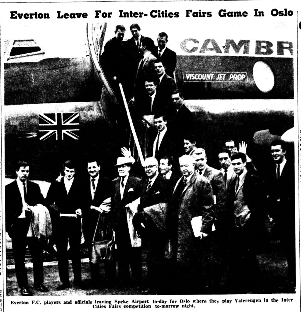 Tommy’s first team debut, after only a handful of reserve appearances, came in a midweek Inter-Cities Fairs Cup match on 14 October 1964. Alex Parker, who had succeeded Roy Vernon as club captain, was unfit to play, so Harry Catterick turned to the 20-year-old rookie (Tommy had travelled with the squad to Norway for the first leg but hadn’t got onto the pitch). 20,717 spectators passed through the Goodison Park turnstiles and saw the debutant play his part in a 4-2 win over Vålerengens. ‘A great debut for young Tom Wright’ proclaimed Leslie Edwards in the Echo. Three days later Tommy made his league debut for the Toffees at Bloomfield Road (the same stadium where Joe Royle would make his first team bow, in more controversial circumstances, 14 months later).