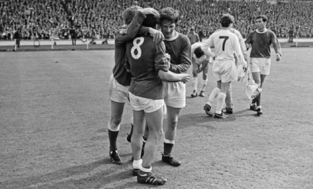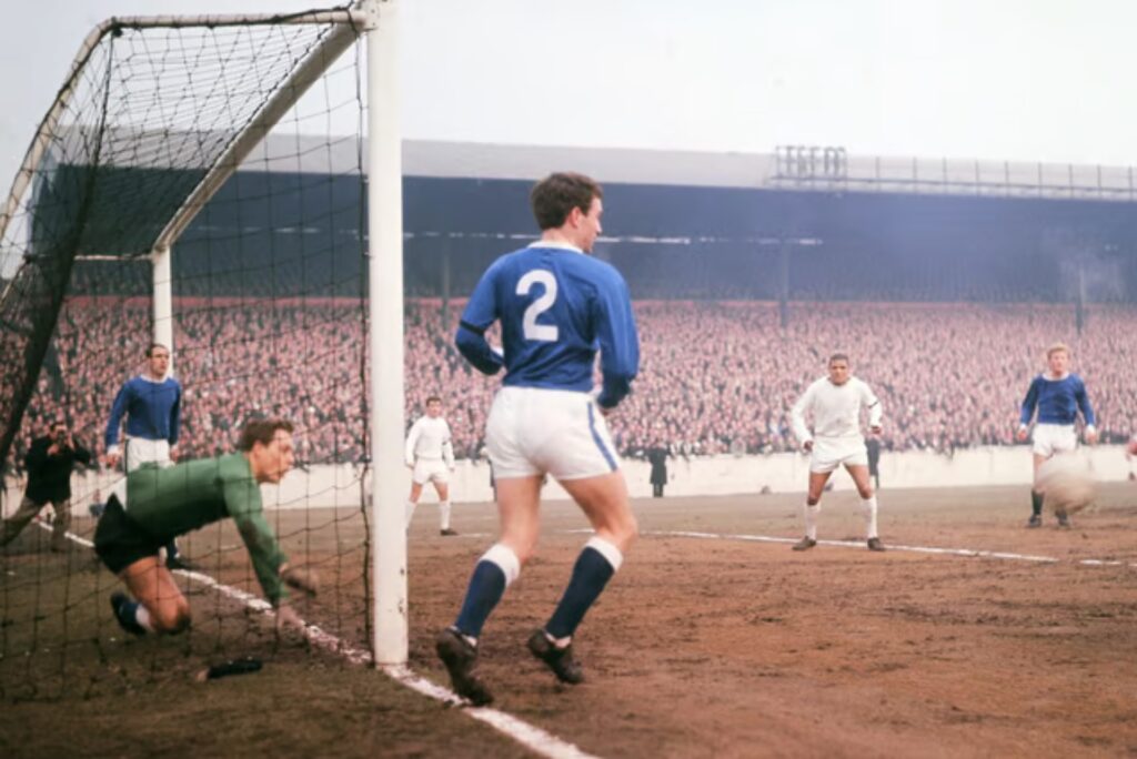 This display of sportsmanship at the highest level of sport, at Mexico ‘70, was captured by photographer Neil Leifer and is one of the defining images of Tommy Wright’s stellar career for club and country. For a period in the late 1960s, he had established himself as the finest English right-back, ironically, vying for that honour with his Toffees clubmate Keith Newton. Like Newton, Wright might never have been there in Mexico, competing at the zenith of world football, had he not been for an inspired positional switch to defence, as a young player.