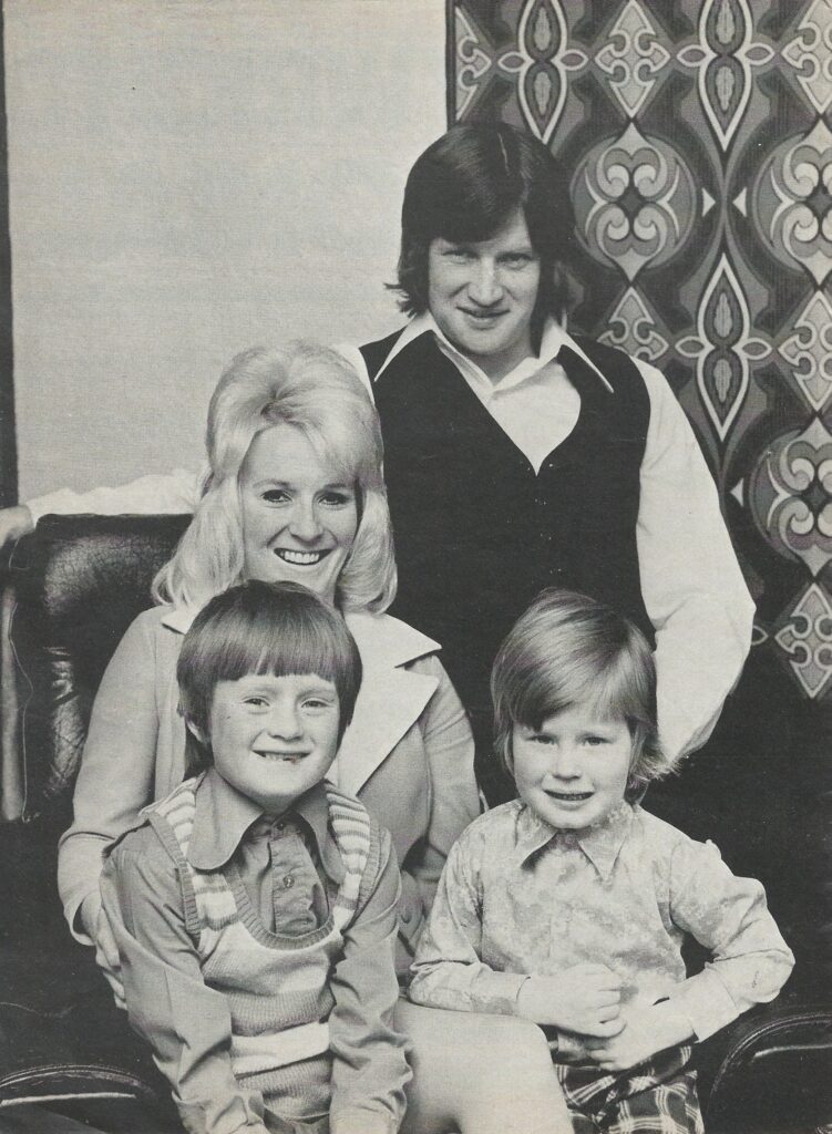 Naturally, Tommy turned to Harvey when choosing a best man for his marriage to seventeen-year-old Gwen Williams at Bootle’s Salvation Army Citadel on 3 July 1965. Tommy never learned to drive, Colin would give him a lift to and from training while Gwen would become the designated driver in the Wright household which, by the early 1970s, consisted of Tommy, Gwen and sons Gary and Andrew living in a pre-war detached house in Aigburth. Ironically, for a man who would jet far and wide on England duty in the late 1960s and 1970, Tommy was a bad flyer, so family holidays tended to be restricted to Wales (where they honeymooned) and the Isle of Man. Tommy would become a regular guest of the Manx Toffees supporters group when holidaying on the island.